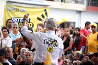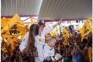 TEMIXCO, MORELOS, 01MAYO2018.- Acto masivo de Rodrigo Gayosso, candidato a la gubernatura por el Partido de la Revolución Democrática (PRD) en el zócalo de este municipio. El hijastro del gobernador estuvo acompañado de su esposa Melissa Torres Sandoval, quien es candidata al congreso local, Hortensia Figueroa quien compite para el senado y otros candidatos. FOTO: MARGARITO PÉREZ RETANA /CUARTOSCURO.COM