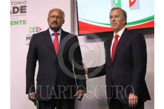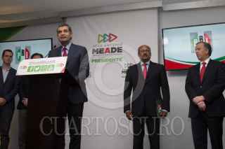CIUDAD DE MÉXICO, 03MAYO2018.- El día de ayer, Enrique Ochoa Reza anunció su renuncia al cargo de presidente del Comité Ejecutivo Nacional del Partido Revolucionario Institucional (PRI). En su lugar, quedó en el cargo Rene Juárez Cisneros, ex gobernador de Guerrero. Al acto acudió el candidato a la presidencia de la República José Antonio Meade Kuribreña, de quien Juárez Cisneros expresó su compromiso y apoyo para quien dijo será el próximo presidente del país. FOTO: BERNANDINO HERNÁNDEZ /CUARTOSCURO.COM