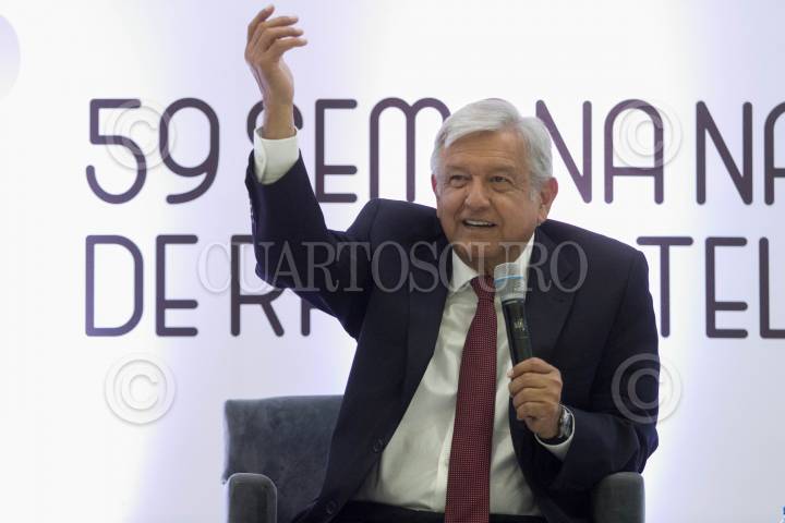 CIUDAD DE MEXICO, 03MAYO2018.- Andrés Manuel López Obrador, candidato presidencial por la coalición "Juntos haremos historia", participó en la 59 Semana Nacional de la Radio y la Televisión. FOTO: MOISÉS PABLO /CUARTOSCURO.COM