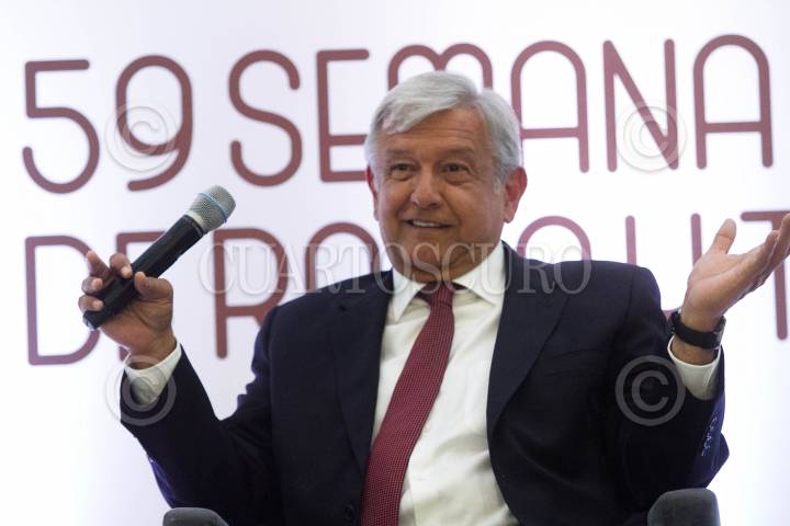 CIUDAD DE MEXICO, 03MAYO2018.- Andrés Manuel López Obrador, candidato presidencial por la coalición "Juntos haremos historia", participó en la 59 Semana Nacional de la Radio y la Televisión. FOTO: MOISÉS PABLO /CUARTOSCURO.COM