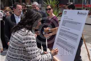 CIUDAD DE MÉXICO, 03MAYO2018.- Alejandra Barrales, candidata para la jefatura de Gobierno por la coalición "Por la Ciudad de México al Frente" encabezó la firma de la iniciativa #YoMeMuevo propuesta por organizaciones civiles, que tiene como fin mejorar la movilidad en la capital del País. FOTO: MARIO JASSO /CUARTOSCURO.COM