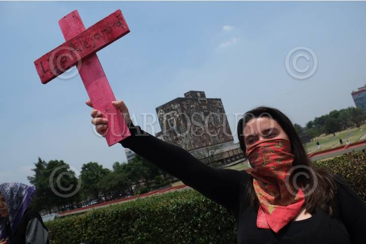 CIUDAD DE MÉXICO, 03MAYO2018.- A un año del feminicidio de Lesvy Rivera Osorio; se llevó a cabo una manifestación en la rectoria de la UNAM encabezada por Araceli Osorio, madre de la victima, la protesta terminó en el teléfono donde fue encontrado su cuerpo hace 12 meses. FOTO: ANDREA MURCIA /CUARTOSCURO.COM
