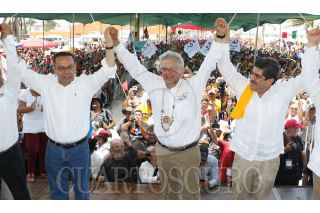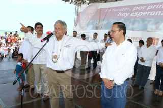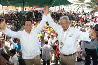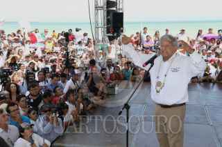 PROGRESO, YUCATÁN, 04MAYO2018.- Andrés Manuel López Obrador, candidato de MORENA a la presidencia de la república se reunió con miles de simparizantes de su partido en el malecon del puerto de Progreso para darles a conocer su propuesta de gobierno. En dicho acto lo acompañaron los ex predientes del PAN, Manuel Espino y Germán Martinez Cazares. FOTO: SAÚL LÓPEZ /CUARTOSCURO.COM