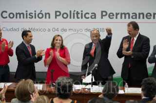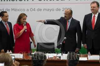 CIUDAD DE MEXICO, 04MAYO2018.- René Juárez Cisneros, tomo protesta del cargo de presidente del Comité Ejecutivo Nacional del Partido Revolucionario Institucional (PRI). Lo acompañaron, Ernesto Gándara Camou, Senador, Claudia Ruiz Massieu Salinas, secretaria general, Emilio Gamboa, coordinador del PRI, Carlos Iriarte Mercado, dirigente estatal e Ismael Alfredo Hernández Deras, Senador. FOTO: ANDREA MURCIA /CUARTOSCURO.COM