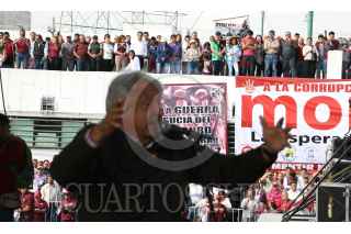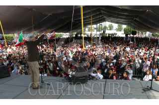 CIUDAD NEZA, ESTADO DE MÉXICO, 05MAYO2018.- Andrés Manuel López Obrador, candidato de MORENA a la presidencia de la república se reunió con miles de simparizantes de su partido en la explanada de Ciudad Neza donde dio a conocer su propuesta de gobierno. FOTO: SAÚL LÓPEZ /CUARTOSCURO.COM