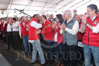 CIUDAD DE MÉXICO, 06MAYO2018.- Los priistas Miguel Ángel Osorio Chong, Manlio Fabio Beltrones y César Camacho, durante el encuentro que la planilla mayor del priismo sostuvo con su militancia en la sede nacional del tricolor. FOTO: CUARTOSCURO.COM