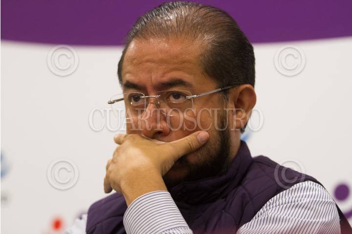 CIUDAD DE MÉXICO, 07MAYO2018.- Hugo Eric Flores Cervantes, dirigente nacional del Partido Encuentro Social, y Adolfo Ríos, candidato a la alcaldía del PES, ofrecieron una conferencia de prensa en la cual condenaron el asesinato de su dirigente de Chihuahua, Eduardo Aragón Caraveo, quien fue secuestrado el pasado 4 de Mayo, su cuerpo fue localizado en la cajuela de un auto. Mientras que el exportero Ríos, denunció como ilegal la impugnación que del partido Convergencia Querétaro realizó ante el Tribunal Electoral del Estado de Querétaro, al considerar que no cumple con los tres años de residencia que la ley electoral. FOTO: MOISÉS PABLO /CUARTOSCURO.COM