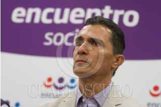 CIUDAD DE MÉXICO, 07MAYO2018.- Hugo Eric Flores Cervantes, dirigente nacional del Partido Encuentro Social, y Adolfo Ríos, candidato a la alcaldía del PES, ofrecieron una conferencia de prensa en la cual condenaron el asesinato de su dirigente de Chihuahua, Eduardo Aragón Caraveo, quien fue secuestrado el pasado 4 de Mayo, su cuerpo fue localizado en la cajuela de un auto. Mientras que el exportero Ríos, denunció como ilegal la impugnación que del partido Convergencia Querétaro realizó ante el Tribunal Electoral del Estado de Querétaro, al considerar que no cumple con los tres años de residencia que la ley electoral. FOTO: MOISÉS PABLO /CUARTOSCURO.COM