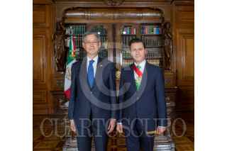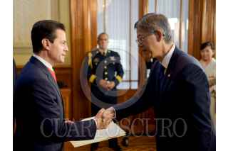 CIUDAD DE MÉXICO, 07MAYO2018.- El Presidente de la República, Enrique Peña Nieto, recibió hoy, en el Palacio Nacional, las cartas credenciales de Yasushi Takase, Embajador de Japón, con quien dialogó sobre temas comunes y las prioridades de México en la relación bilateral. FOTO: PRESIDENCIA /CUARTOSCURO.COM