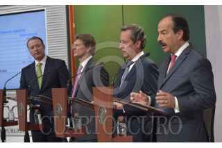 CIUDAD DE MÉXICO, 09MAYO2018.- Eduardo Sánchez Hernández, Coordinador General de Comunicación Social de la Presidencia y Vocero del Gobierno de la República, presentó en una conferencia de prensa junto con el Secretario de Turismo, Enrique de la Madrid Cordero; el Gobernador de Sinaloa, Quirino Ordaz Coppel, y el Director General del Consejo de Promoción Turística de México, Héctor Flores Santana, los principales resultados del Tianguis Turístico de Mazatlán 2018. FOTO: CUARTOSCURO.COM