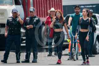 CIUDAD DE MÉXICO, 09MAYO2018.- Dos mujeres caminan sobre la calle canal de Apatlaco mientras son observadas por un grupo de hombres. FOTO: DIEGO SIMÓN SÁNCHEZ /CUARTOSCURO.COM