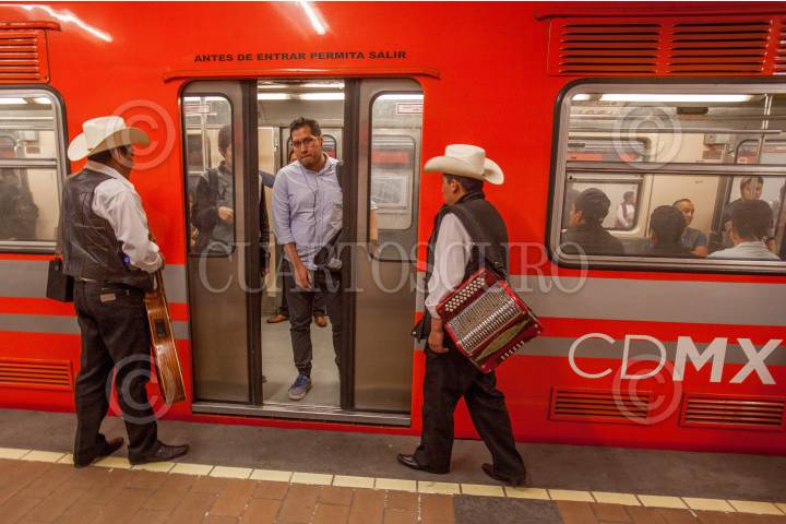 CIUDAD DE MÉXICO 09MAYO2018.- Músicos de origen veracruzano y radicados en el Estado de México, usan a diario el Metro para desplazarse a los restaurantes aledaños a La Villa. FOTO: JUAN PABLO ZAMORA /CUARTOSCURO.COM