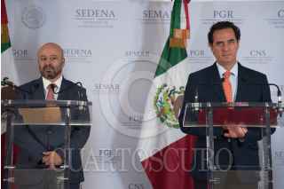 CIUDAD DE MÉXICO, 09MAYO2018.- Renato Sales Heredia, comisionado Nacional de Seguridad, en conferencia de prensa informó sobre la detención de la detención de Gerardo Mendoza Chávez, "El Gerardón”, líder del cártel de Colima, y presunto autor intelectual del asesinato del ex gobernador de Colima. FOTO: MARIO JASSO /CUARTOSCURO.COM