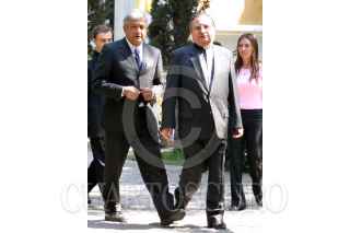 MEXICO, D.F. 04ABRIL2005.- Andres Manuel López Obrador, jefe de gobierno de la ciudad de México y el nuncio apostolico Giuseppe Bertello, a su salida de la Nunciatura Apostólica, donde firmaron el libro de condolencias por el fallecimiento del Papa Juan Pablo II. FOTO: Sandra Perdomo/CUARTOSCURO.COM