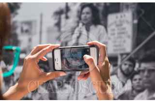 CIUDAD DE MÉXICO, 10MAYO2018.- Mujer observa fotografía de Pedro Valtierra la cual es parte de la exposición “La fuerza de las mujeres”, un muestra fotográfica montada sobre Paseo de la Reforma y la cual muestra el tema de las desapariciones en el país y la misión de muchos colectivos de salir a rastrear y buscar a sus familiares. FOTO: ANDREA MURCIA /CUARTOSCURO.COM