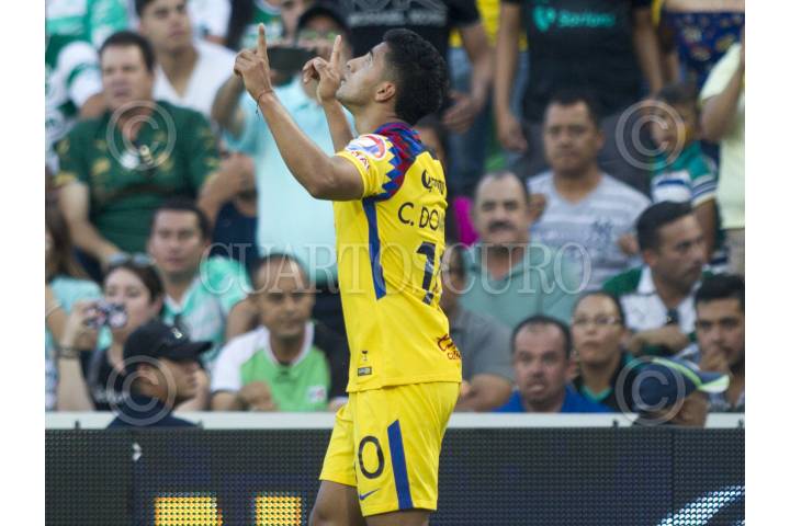 TORREÓN, COAHUILA, 10MAYO2018.- Jugadores del equipo del Santos, celebran el gol ante el equipo de las Águilas del América, en el estadio Corona, partido correspondiente a semifinales de ida de la Clausura 2018 de la Liga MX. Marcador Final: Santos: 4 - América: 1 FOTO: GABRIELA PÉREZ MONTIEL /CUARTOSCURO.COM