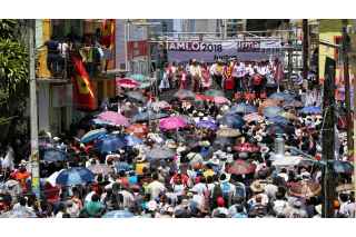 TEOTITLÁN, OAXACA, 11MAYO2018.- Andrés Manuel López Obrador, candidato de Morena a la presidencia de la república, sostuvo un encuentro con miles de simpatizantes a su movimiento en la plaza principal de la cabecera municipal en donde dio a conocer sus propuesta de gobierno. FOTO: MISAEL VALTIERRA / CUARTOSCURO.COM