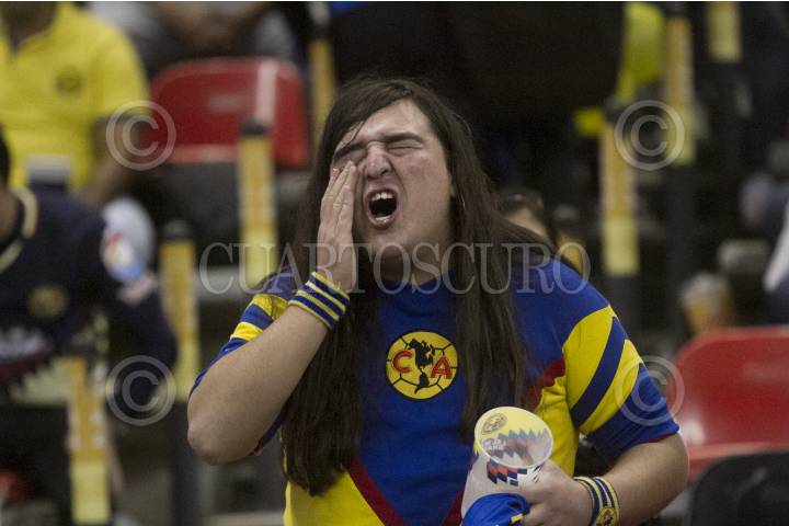 CIUDAD DE MÉXICO, 13MAYO2018.- La afición americanista vivió otra desilusión luego de que equipo empatara a dos goles contra los Santos de la Comarca, en el juego de vuelta de las simifinales de la Liga MX. El global quedó 6-3 a favor de los laguneros y con este marcador avanzan a la final contra los Diablos Rojos del Toluca. FOTO: MOISÉS PABLO /CUARTOSCURO.COM