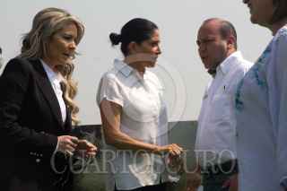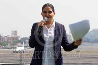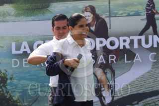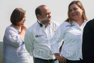 CIUDAD DE MÉXICO, 14MAYO2018.- Alejandra Barrales Magdaleno, candidata a la Jefatura de Gobierno por la coalición "Por la CDMX al Frente", presentó su proyecto de uso de los terrenos del Aeropuerto Internacional de la Ciudad de México, los cuales quedarán en desuso para darle paso al Nuevo Aeropuerto de la Ciudad de México. La perredista propuso un nuevo Chapultepec y una nueva Ciudad Universitaria, ya que puntualiza que es vital un nuevo pulmón para la capital. En la imagen Barrales conversa con los candidatos a alcaldías; Nora Arias y Julio César Moreno. FOTO: MOISÉS PABLO /CUARTOSCURO.COM