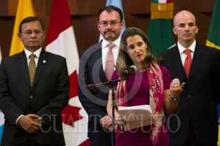 CIUDAD DE MÉXICO, 14MAYO2018.- Chrystia Freeland, ministra de Asuntos Exteriores de Canadá, tras concluir la Reunión de Ministros de Relaciones Exteriores y Finanzas del Grupo de Lima, en el edificio de la SRE. Los ministros ahí presentes llamaron al gobierno venezolano a suspender las elecciones presidenciales que se habrán de realizar el próximo fin de semana en la nación sudamericana. FOTO: MOISÉS PABLO /CUARTOSCURO.COM
