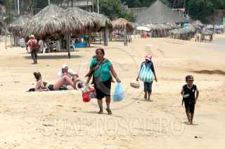 ACAPULCO, GUERRERO, 14MAYO2018.- Familias indígenas integradas por menores de edad originarias de comunidades de la montaña de Guerrero, recorren diariamente las playas del puerto Acapulco en busca de un sustento vendiendo artículos de playa que ofrecen a los turistas. FOTO: CARLOS ALBERTO CARBAJAL /CUARTOSCURO.COM