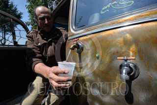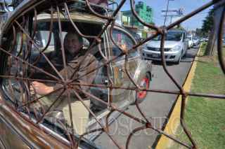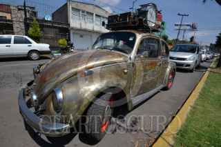 TOLUCA, ESTADO DE MÉXICO, 14MAYO2018.- Ignacio Verduzco con 70 años de edad, después de jubilarse ha invertido tres años en modificar un su viejo vocho al estilo Ray Rod, teniendo como principal atracción dos llaves de las cuales sale tequila y whiskey, lleva un triciclo viejo, una guacamaya en su jaula, maletas viejas y otros accesorios. FOTO: ARTEMIO GUERRA BAZ /CUARTOSCURO.COM