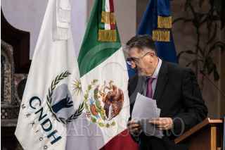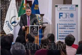 CIUDAD DE MÉXICO, 15MAYO2018.- Luis Raúl González Pérez, presidente de la Comisión Nacional de los Derechos Humanos (CNDH), encabezó la inauguración del Foro Internacional: "70 Aniversario de la Declaración Americana de los Derechos y Deberes del Hombre”, celebrado en el museo Casa del Risco. El ómbudsman, indicó e invitó a los candidatos presidenciables, que en sus propuestas prioricen el tema humanitario en materia de migración. FOTO: MARIO JASSO /CUARTOSCURO.COM
