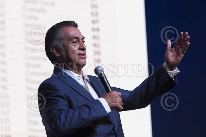 CIUDAD DE MÉXICO, 15MAYO2018.- Jaime Rodríguez Calderón "El Bronco", candidato independiente a la Presidencia de la República, participó en la Reunión Nacional de Consejeros Regionales de BBVA Bancomer. FOTO: MOISÉS PABLO /CUARTOSCURO.COM