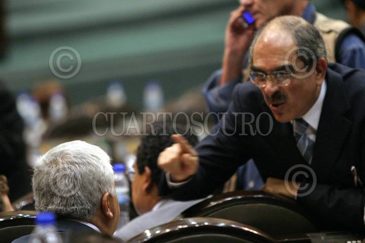 MEXICO, D.F. 05ABRIL2005.- Los diputados Pablo Gómez (PRD), Francisco Agustìn Arroyo (PRI) y Rebeca Godìnez (PRI), integrante de la Secciòn Instructora, platican durante la sesiòn en San Lázaro. FOTO: Sandra Perdomo/CUARTOSCURO.COM