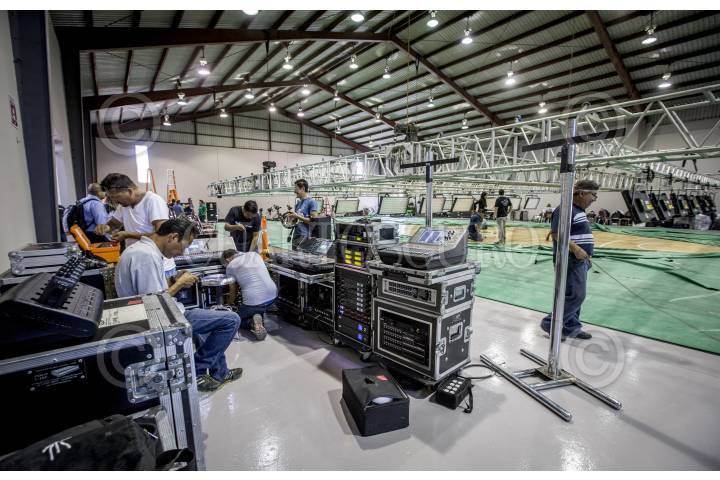 TIJUANA BAJA CALIFORNIA, 16MAYO2018.- El Instituto Nacional Electoral (INE) inició con la instalación de la estructura del set televisivo en el gimnasio de la Universidad Autónoma de Baja California (UABC), lugar donde se realizará el segundo debate de candidatos a la Presidencia de la República. FOTO: OMAR MARTÍNEZ /CUARTOSCURO.COM