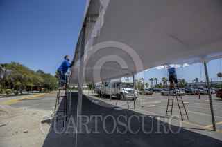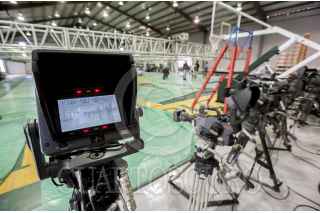 TIJUANA BAJA CALIFORNIA, 16MAYO2018.- El Instituto Nacional Electoral (INE) inició con la instalación de la estructura del set televisivo en el gimnasio de la Universidad Autónoma de Baja California (UABC), lugar donde se realizará el segundo debate de candidatos a la Presidencia de la República. FOTO: OMAR MARTÍNEZ /CUARTOSCURO.COM