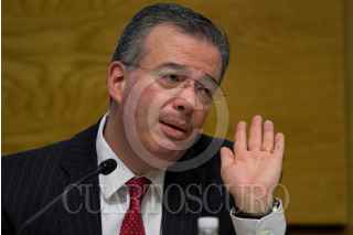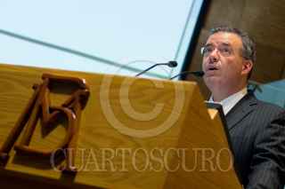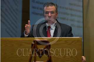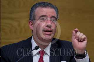 CIUDAD DE MÉXICO, 16MAYO2018.- Alejandro Díaz de León, gobernador del Banco de México, encabezó la conferencia de prensa para dar detalles de las afectaciones ocurridas tras el hackeo a la banca mexicana, que alcanzó al Sistema de Pagos Electrónicos Interbancarios (SPEI) y que ha generado la perdida de 300 millones de pesos, hasta el momento. Las investigaciones continúan, y los usuarios se siguen viendo afectados para recibir sus pagos, dos de los bancos mayormente afectados fueron Bancomer y Banamex. FOTO: GALO CAÑAS /CUARTOSCURO.COM