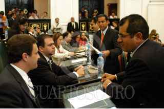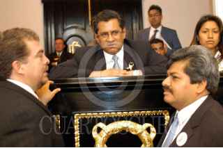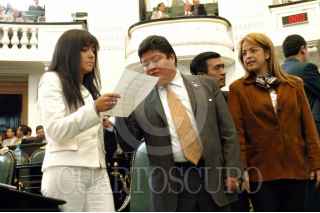 MEXICO, D.F 05ABRIL2005.- Los diputados perredistas Francisco Chihuil, Alfredo Hernández Raigosa y el panista Obdulio Avila, durante la sesión ordinaria de la Asamblea Legislariva. FOTO: CUARTOSCURO.COM