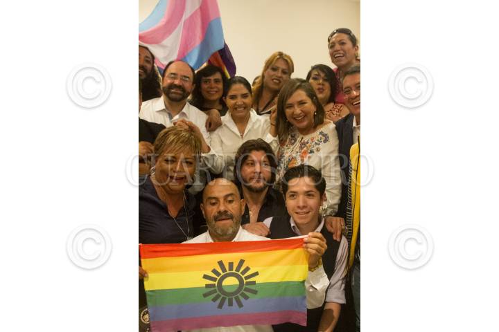 CIUDAD DE MÉXICO, 17MAYO2018.- Alejandra Barrales, candidata a la Jefatura de Gobierno por la coalición "Por México al Frente", firmó la agenda política de la coalición mexicana LGBTTTI+, en el marco del Día Internacional contra la Homofobia. El acto contó con la presencia de personas de la comunidad gay quienes exigieron un cese a la violencia que viven a diario y justicia para las personas transexuales que han sido asesinadas en los últimos años en la capital. Al final del acto los participantes de este evento se tomaron una foto conmemorativa en el Hemiciclo a Juárez. FOTO: MOISÉS PABLO /CUARTOSCURO.COM