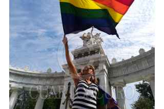 CIUDAD DE MÉXICO, 17MAYO2018.- Una mujer ondea la bandera arcoiris en el Hemiciclo a Juárez, el día de hoy en la capital se llevaron a cabo varias actividades para conmemorar el Día Internacional contra la Homofobia. FOTO: MOISÉS PABLO /CUARTOSCURO.COM
