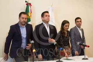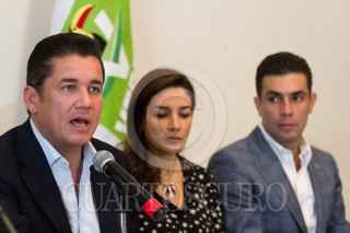 CIUDAD DE MÉXICO, 17MAYO2018.- Los integrantes del PVEM; Carlos Alberto Puente Salas, Ana Lilia Garza Cadena y Jesús Sesma, ofrecieron una conferencia en la que señalarón que retomarán su propuesta de imponer la pena de muerte a violadores, para su próxima agenda legislativa. FOTO: MOISÉS PABLO /CUARTOSCURO.COM