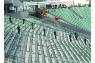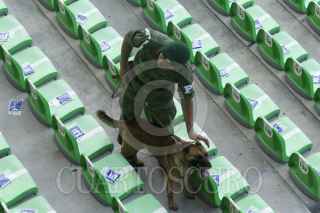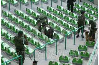 TORREÓN, COAHUILA, 17MAYO2018.- Policías militares y perros entrenados, revisan las gradas del estadio Corona previo al partido de ida de la final entre Santos vs Toluca. FOTO: GABRIELA PÉREZ MONTIEL /CUARTOSCURO.COM