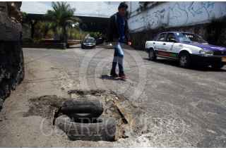 CUERNAVACA, MORELOS, 17MAYO2018.- Las tapas de unas coladeras del drenaje de la ciudad se colapsarón en el circuito Adolfo López Mateos, poniendo el peligro a los automovilistas que transitan por el sitio. FOTO: MARGARITO PÉREZ RETANA /CUARTOSCURO.COM