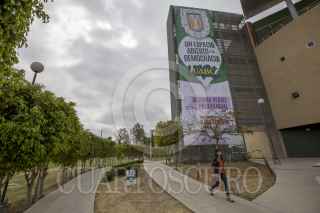 TIJUANA BAJA CALIFORNIA, 18MAYO2018.- El Instituto Nacional Electoral (INE) continua con trabajos previos en el campus de la Universidad Autónoma de Baja California (UABC), lugar donde se realizará el segundo debate de candidatos a la Presidencia de la República. FOTO: OMAR MARTÍNEZ /CUARTOSCURO.COM