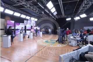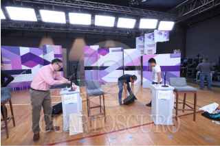TIJUANA BAJA CALIFORNIA, 19MAYO2018.- El Instituto Nacional Electoral (INE) ofreció un recorrido a los medios de comunicación por el set televisivo en el gimnasio de la Universidad Autónoma de Baja California (UABC), lugar donde se realizará el segundo debate de candidatos a la Presidencia de la República. FOTO: OMAR MARTÍNEZ /CUARTOSCURO.COM