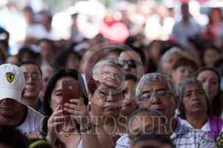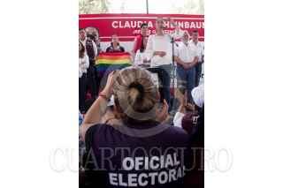 CIUDAD DE MÉXICO, 20MAYO2018.- Claudia Sheinbaum, candidata a la jefatura de gobierno de la capital por la coalición “Juntos Haremos Historia”, realizó recorrido por la delegación Coyoacán, donde platicó con vecinos de las zonas Pueblos Los Reyes; Pedregal de Santa Úrsula III, y condominos de la Unidad Habitacional Zapata/Carmen Serdán. Sheinbaum Pardo destacó que el cambio esta cada vez más cerca tanto en el gobierno de la ciudad como en la presidencia, así como llamó a todos a votar el primero de julio y de correr la voz. En la imagen, una oficial electoral del Instituto Electoral de la Ciudad de México (IECM) toma fotos y vídeo del mitín de la candidata en la unidad habitacioanl Zapata/Carmen Serdán. FOTO: GALO CAÑAS /CUARTOSCURO.COM