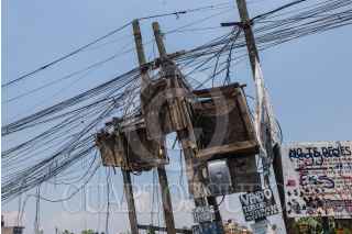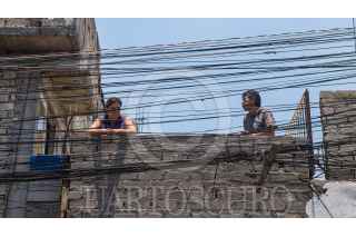 CIUDAD DE MÉXICO, 20MAYO2018.- Dos personas observan entre los cables de luz desde el balcón de su hogar en un asentamiento de la capital. FOTO: TERCERO DÍAZ /CUARTOSCURO.COM