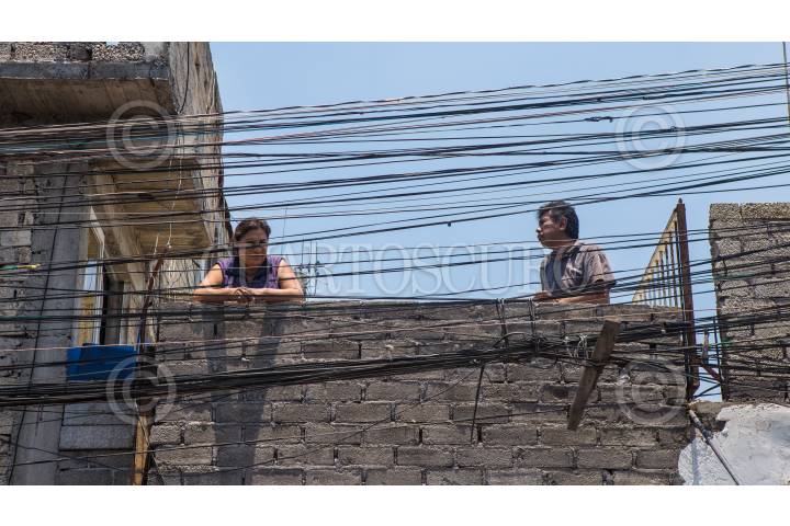 CIUDAD DE MÉXICO, 20MAYO2018.- Dos personas observan entre los cables de luz desde el balcón de su hogar en un asentamiento de la capital. FOTO: TERCERO DÍAZ /CUARTOSCURO.COM