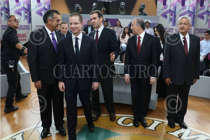 TIJUANA, BAJA CALIFORNIA, 20 MAYO2018.- Jaime Rodriguez Calderón, Ricardo Anaya Cortes, Jose Antonio Meade y Andrés Manuel López Obrador, candidatos a la presidencia de la república a su llegada al set donde se realizó el segundo debate presidencial realizado en la Universidad Autonoma de Baja California. FOTO: CUARTOSCURO.COM
