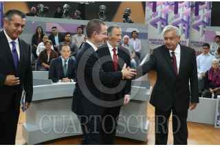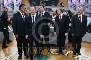 TIJUANA, BAJA CALIFORNIA, 20 MAYO2018.- Jaime Rodriguez Calderón, Ricardo Anaya Cortes, Jose Antonio Meade y Andrés Manuel López Obrador, candidatos a la presidencia de la república a su llegada al set donde se realizó el segundo debate presidencial realizado en la Universidad Autonoma de Baja California. FOTO: CUARTOSCURO.COM