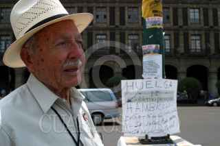 MEXICO, D.F. 06ABRIL2005.- El doctor Miguel dice llevar casi dos dìas en huelga de hambre, en la explanada del zócalo, manifiesta asì, su desacuerdo contra el desafuero del jefe de gobierno capitalino. FOTO: Sandra Perdomo/CUARTOSCURO.COM