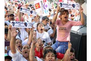 LA BARCA, JALISCO, 21MAYO2018.- Andrés Manuel López Obrador, candidato de la coalición “Juntos Haremos Historia” de los partidos Morena, PT y PES, sostuvo un encuentro con simpatizantes a su movimiento en la plaza principal de la cabecera municipal. FOTO: SAÚL LÓPEZ / CUARTOSCURO.COM