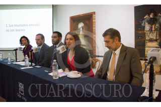 CIUDAD DE MÉXICO, 22MAYO2018.- Economistas de la organización México Eválua, Adrián García, Alfredo Elizondo, Mariana Campos y Luis Foncerrada, en conferencia de prensa esta mañana. FOTO: VICTORIA VALTIERRA /CUARTOSCURO.COM