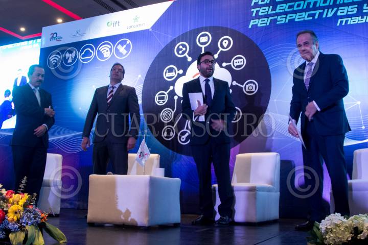 CIUDAD DE MÉXICO, 22MAYO2018.- Miguel Ángel García, vicepresidente de la Concamin; Alberto Esteban Marina, director general de Normas de la Secretaría de Economía; Gabriel Contreras Saldívar, comisionado presidente del Instituto Federal de Telecomunicaciones (IFT), y Gerardo Hernández Garza, presidente de COMENOR, durante la inauguración del Foro de Telecomunicaciones 2018 “Perspectivas y Retos”, donde se pretende abordar el avance y mejorar que el país ha tenido en dicha materia. FOTO: GALO CAÑAS /CUARTOSCURO.COM