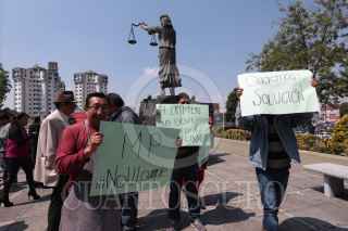 TOLUCA, ESTADO DE MEXICO, 22MAYO2018.- Vecinos del Fraccionamiento San Dimas, ubicado en el municipio de San Antonio la Isla, se manifestaron en el edificio de la Fiscalía General de Justicia del Estado de México exigiendo justicia por la muerte de una mujer el pasado fin de semana que fue atropellada en este fraccionamiento por un joven que conducía bajo el influjo del alcohol, y salió libre de toda culpa. FOTO: ARTEMIO GUERRA BAZ /CUARTOSCURO.COM